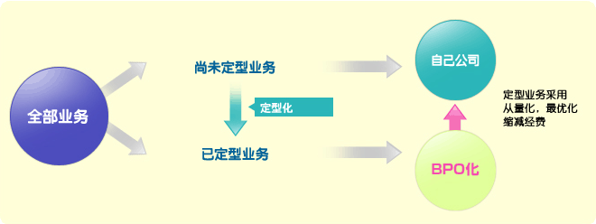 明确可以提高企业实力的BPO化,即是将企业视线从“什么应拿出去外包”转换为“什么应自己做”。