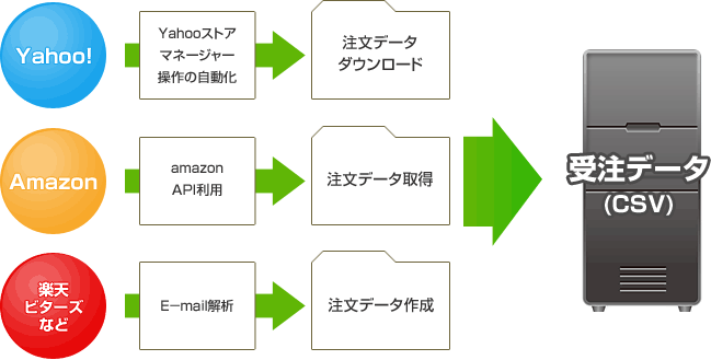 各サイト別注文情報を共通フォーマット化(フォーマット変更可能)
